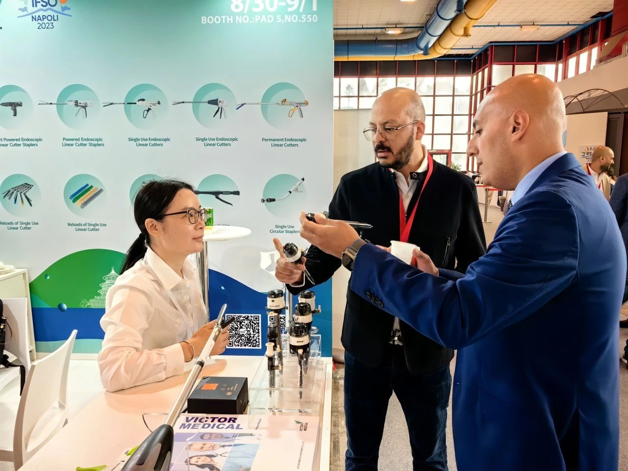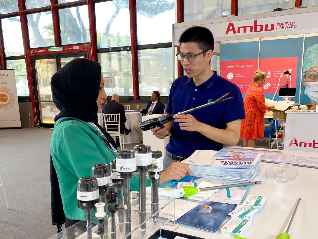 威克醫(yī)療國(guó)際部團(tuán)隊(duì)攜全新自主研發(fā)“VicGenius”全電動(dòng)腔鏡吻合器、純金屬打造可重復(fù)使用腔鏡吻合器及全線(xiàn)微創(chuàng)外科醫(yī)療器械產(chǎn)品,與各大友商同臺(tái)競(jìng)技,與世界各地專(zhuān)家、科研技術(shù)人員展開(kāi)了熱烈的交流。